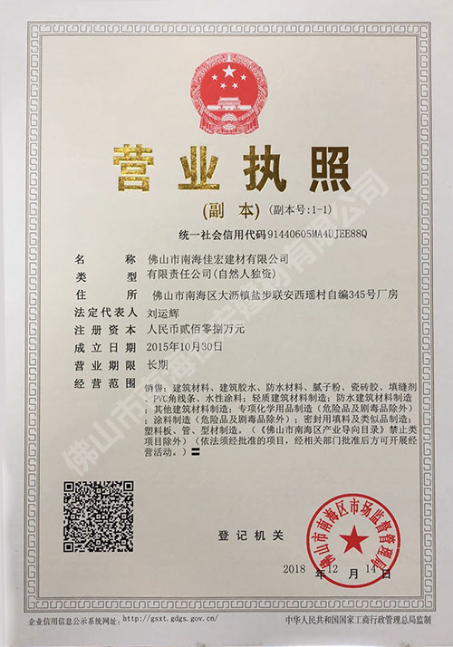 以不斷創(chuàng)新發(fā)展的精神給您提供最優(yōu)質完善的產(chǎn)品佛山市南海佳宏建材有限公司是一家專業(yè)從事研發(fā)、生產(chǎn)、銷售環(huán)保建筑材料的綜合性企業(yè),主要經(jīng)營銷售:建筑材料;加工、銷售:建筑膠水、防水材料、膩子粉、瓷磚膠、填縫劑、PVC角線條、水性涂料。經(jīng)過多年的發(fā)展,本公司已擁有雄厚的技術力 量,一批高素質的管理人員、銷售人員和專業(yè)的生產(chǎn)人員。先后多次派出技術人員參加全國、省、市 等有關部門組織的專業(yè)技術培訓,并取得了相應的資格證書。
